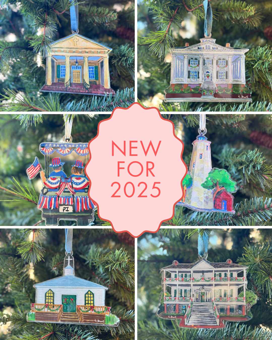 My newest ornament designs represent some of my favorite places in the region! From Pawleys Island landmarks to Old Baldy at Bald Head Island, to Downtown Wilmington's Best Historic Homes: the Burgwin-Wright House and Bellamy Mansion.