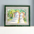 Silver grass cloth mat and dark green lacquer frame. Has an easel for standing on a shelf, will not hang on wall.